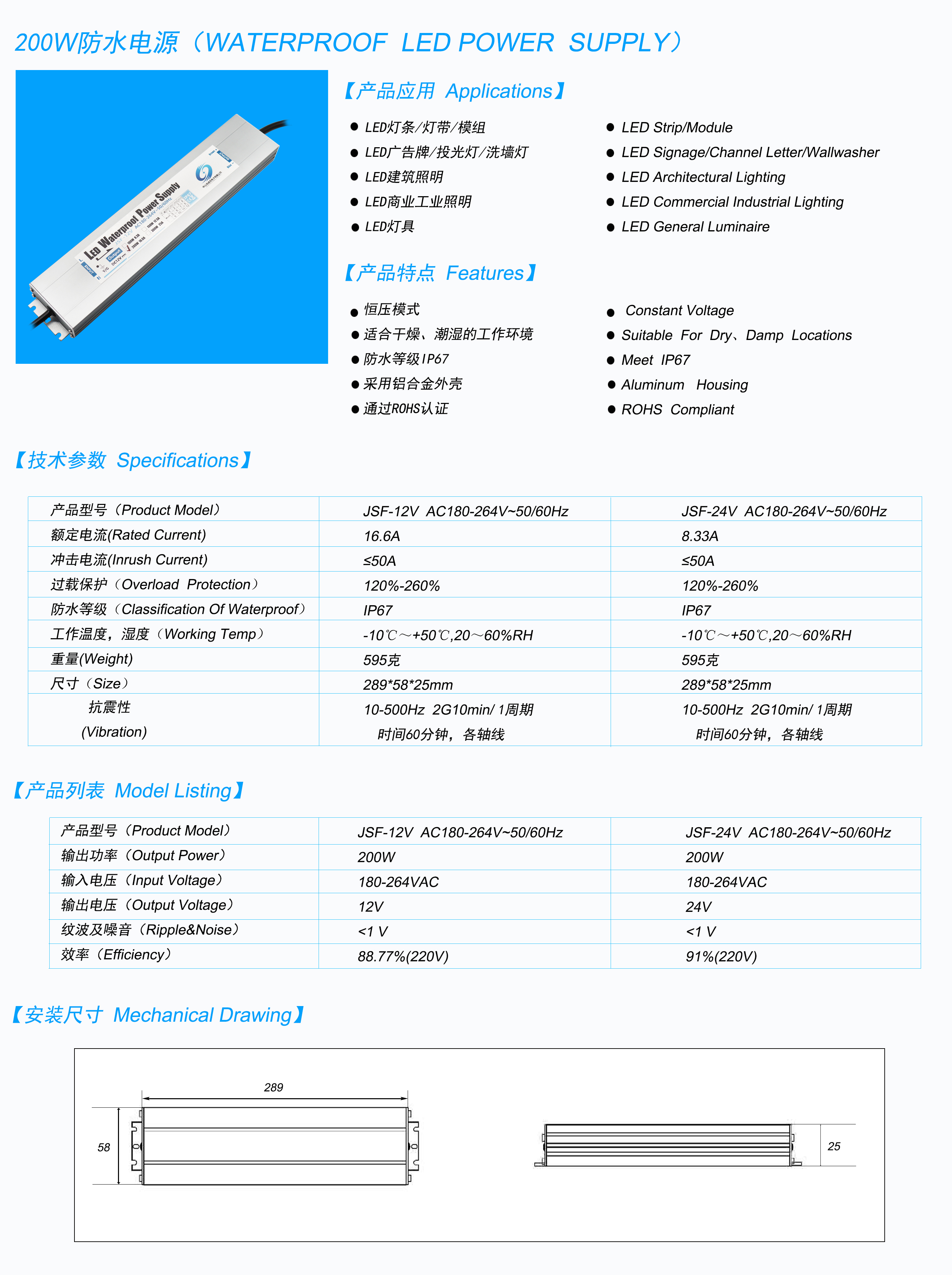 变压器型号:JSP-12V-200W